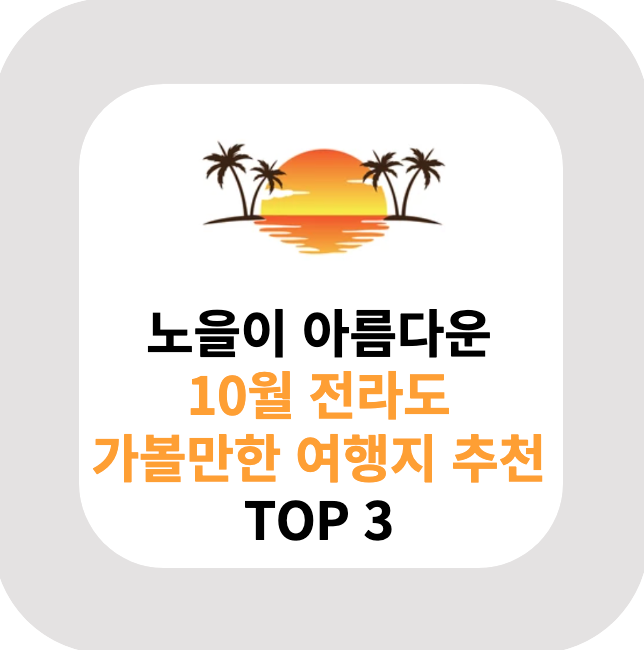 | 9월, 10월 전라도 여행지 추천 BEST 3 (1) | 2023.09.30 |