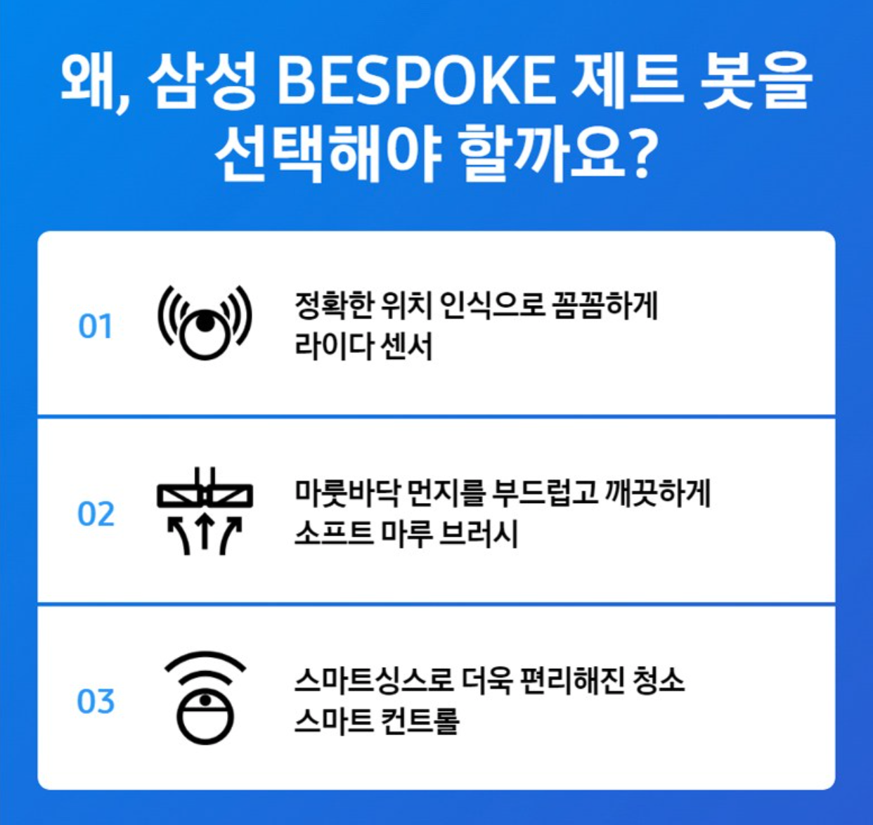 부모님이 받으면 좋아하실 선물 2위는 로봇청소기입니다. 여러 브랜드의 로봇청소기가 있는데 동일한 가격대의 로봇청소기에 비해 성능이 좋은 삼성전자 BESPOKE 제트봇 로봇청소기를 추천드립니다.