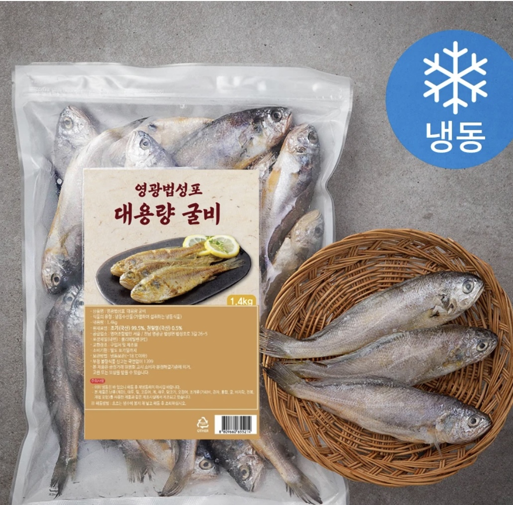 굴비는 단백질이 풍부해 환자의 원기회복에 좋은 음식이고, 뇌건강과 심혈관 질환 예방에도 좋습니다. 굴비하면 법성포 굴비가 유명하죠. 담백하면서도 짭쪼름한 냉동 굴비입니다.
