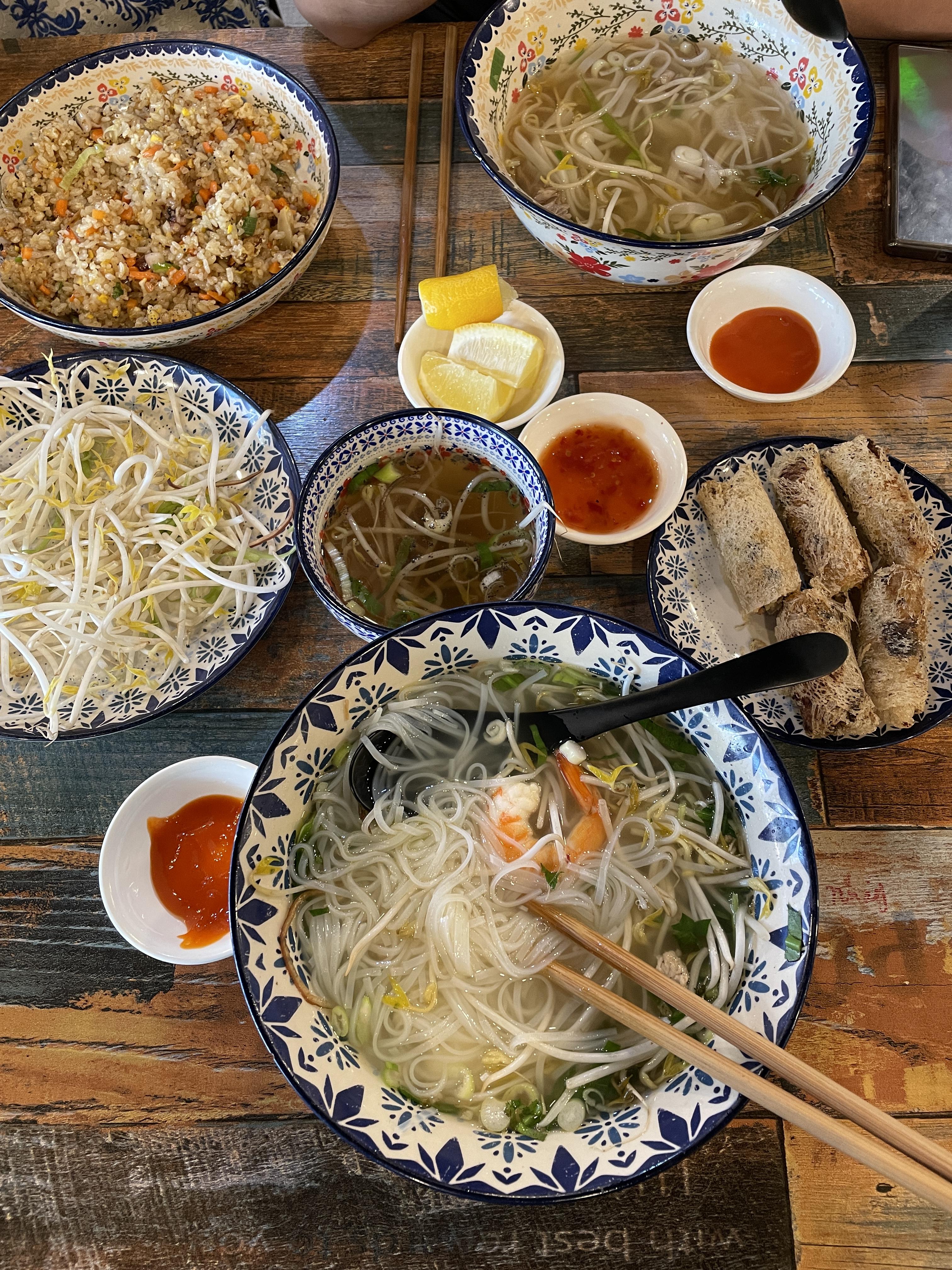 성인 3명이서 소고기 쌀국수, 후디우, 짜조, 해산볶음밥 이렇게 여러개 시켜봤어요!