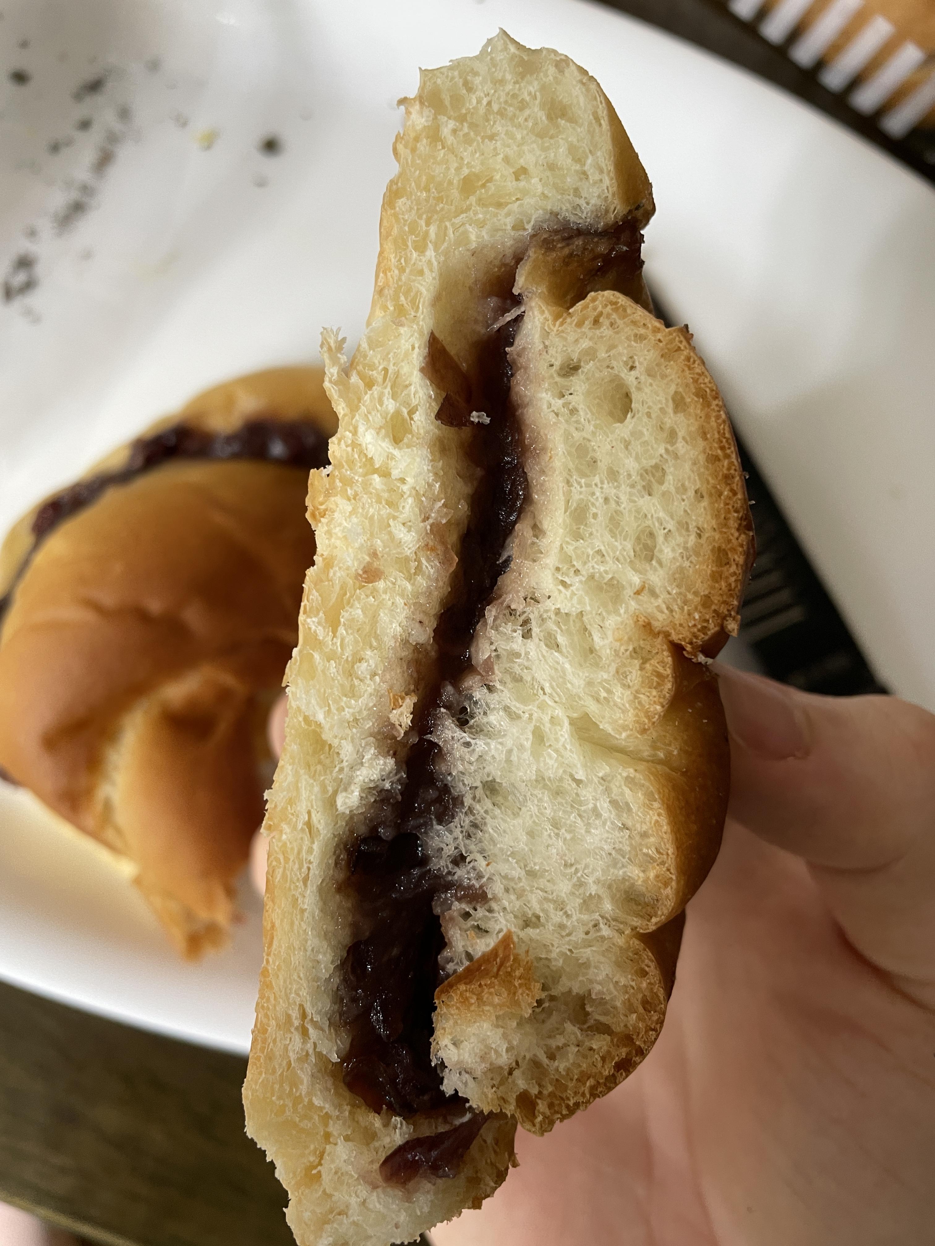 단팥빵과 통팥빵이 있었는데 통팥빵을 골라봤어요! 단팥이랑 맛이 확실히 달랐어요. 더 부드럽고 고소한 통팥 덕분에 맛있어요!