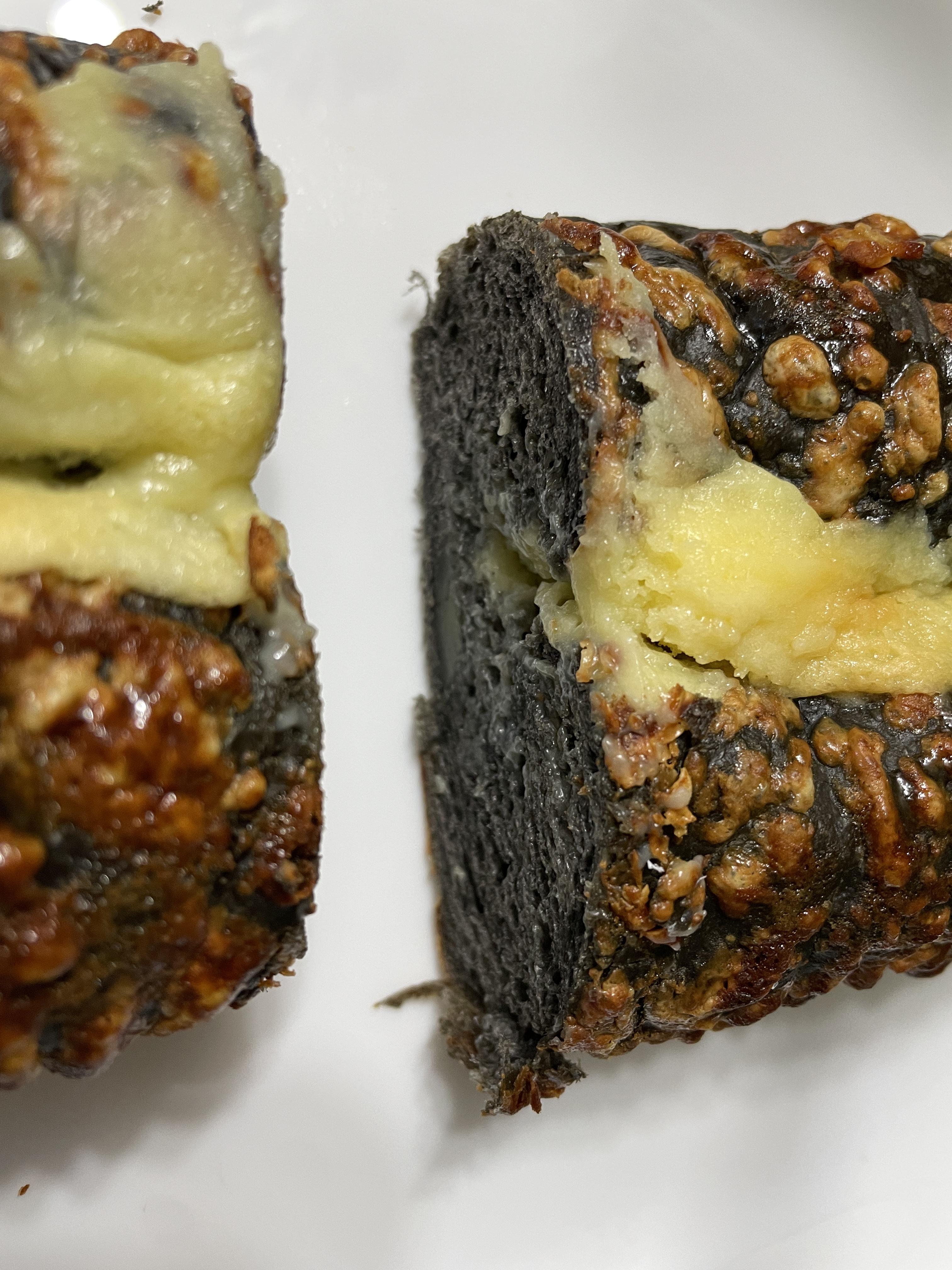 겉은 바삭바삭하고 안은 부드러운 겉바속촉 먹물바게트에요! 저는 겉이 바삭바삭해서 더 맛있더라구요!