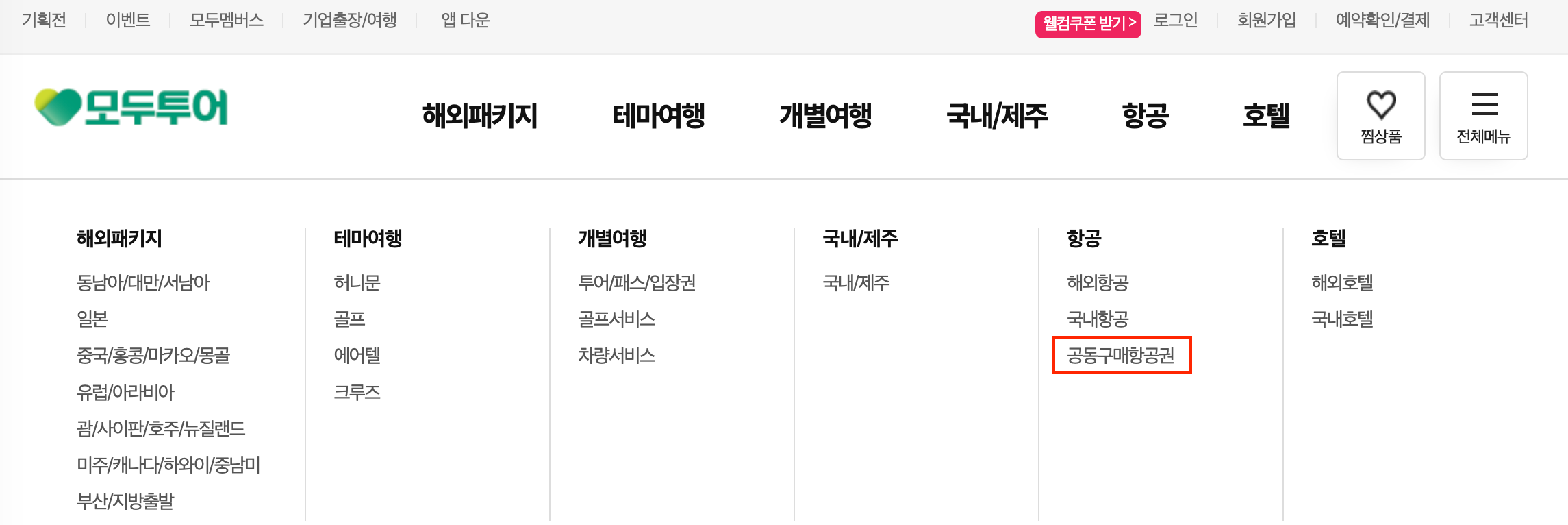 검색창에 공동구매항공권을 치시면, 모두투어나 하나투어 등 여러 여행사에서 하는 공동으로 구매하는 항공권이 있습니다.