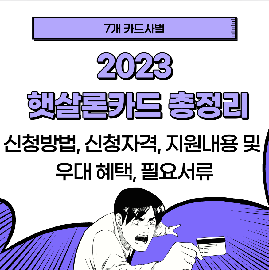 햇살론 카드는 우리, 롯데, 국민, 삼성, 신한, 하나카드 7개의 신용카드사에서 신청 가능합니다.
