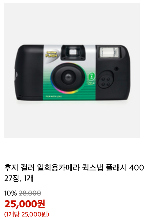 연말에 가족 모임 또는 파티뿐만 아니라 야외 겨울풍경을 감성적으로 찍을 수 있는 일회용 필름카메라입니다. 가격은 1만 원대부터 성능에 따라 5만 원대까지 다양하게 있습니다. 센스 있는 연말선물로 추천드립니다.
