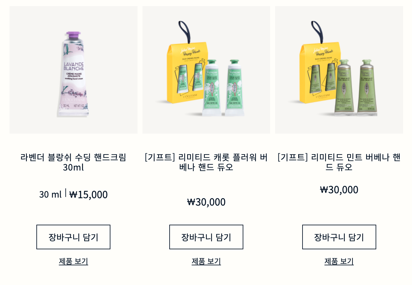 핸드크림은 남녀 불문 겨울 필수 아이템입니다. 전 11월부터 이미 핸드크림을 사용하기 시작했습니다. 록시땅 핸드크림은 특히나 1만 원대부터 3만 원대까지 가격이 다양하게 있어 주는 사람도, 받는 사람도 부담스럽지 않은 선물입니다.
