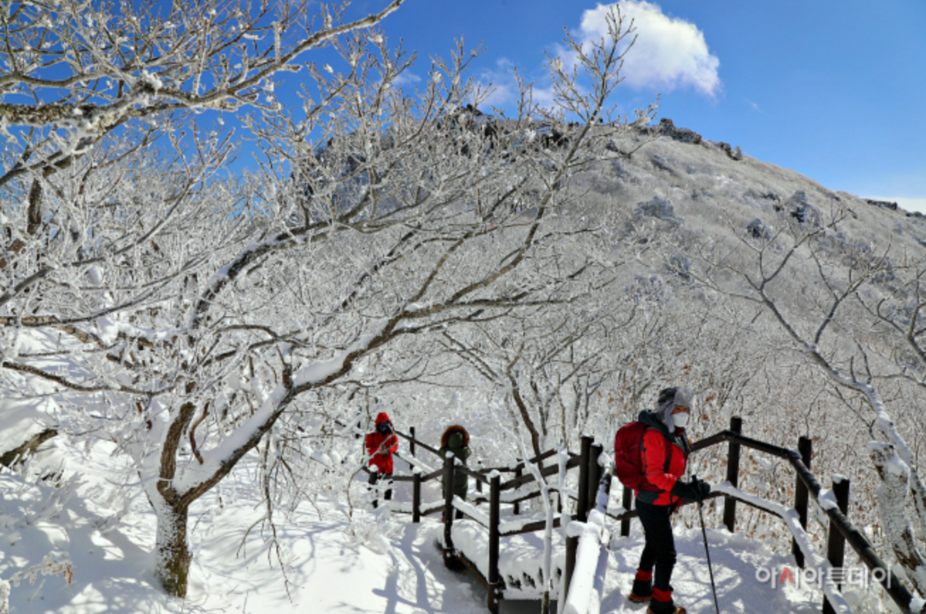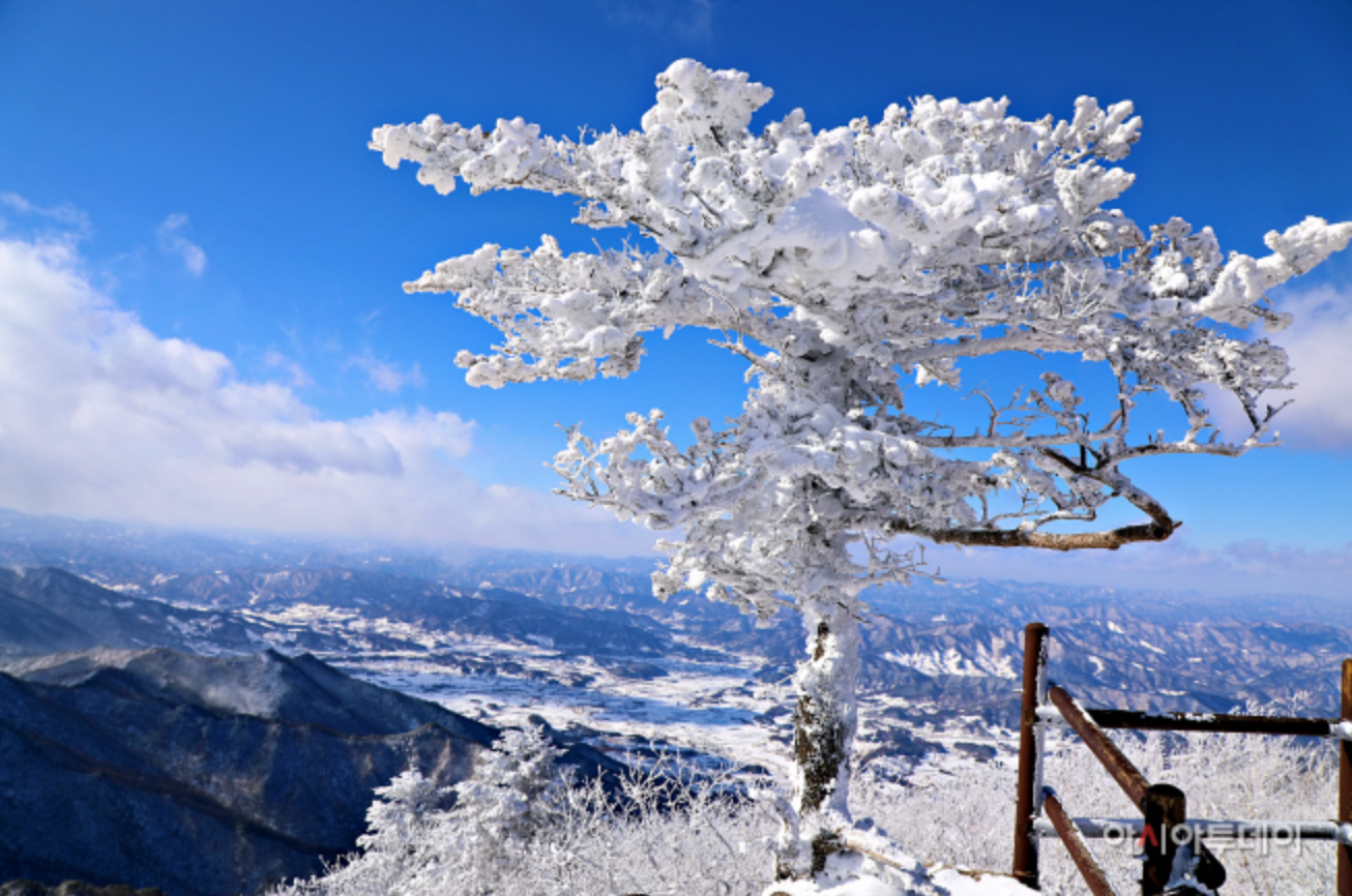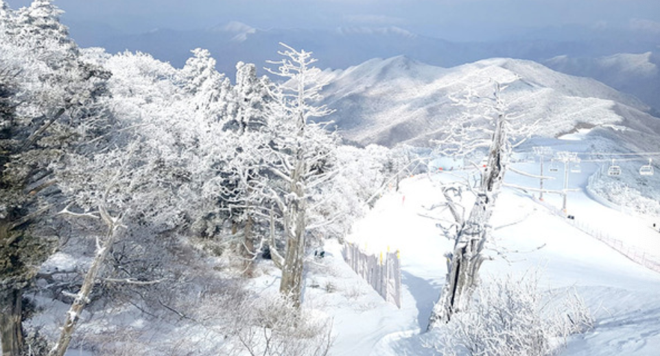 무주에 스키나 보드 타는 것 말고도 가볼 만한 겨울 여행지가 있습니다. 바로 출사명소 설경으로 유명한 겨울산인 덕유산입니다. 덕유산은 눈이 내리면 능선에 하얀 눈이 피어나는 것을 제대로 볼 수 있는 곳입니다.