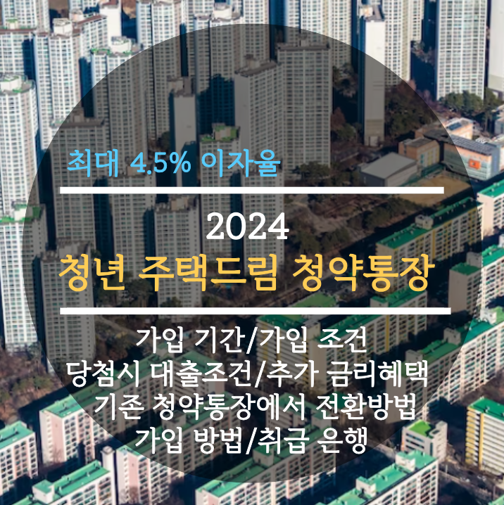 2024 청년 주택드림 청약통장 가입 기간/ 가입 조건/ 당첨시 대출 조건/ 추가 금리 혜택/ 가입 방법/ 취급 은행/ 필요 서류/ 기존 청약통장에서 전환방법