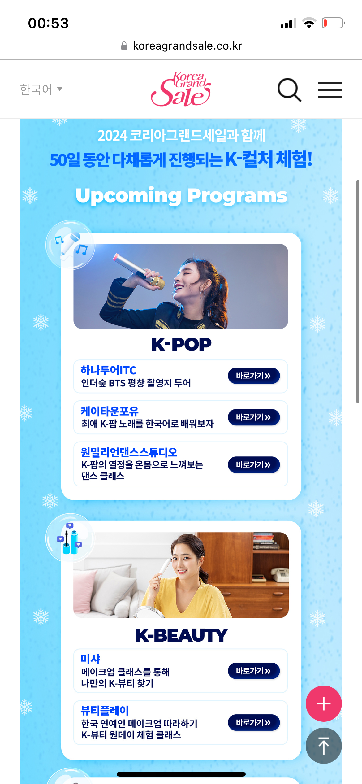전통 한복 대여, 2시간 만에 한글 읽기, 백내장/스마일라식 등 안과 시술 등 다양한 한국 체험 OTA 할인이 있습니다.