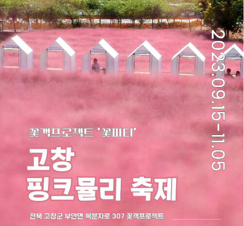 2023년 9월 15일부터 11월 5일까지 진행하는 고창 핑크뮬리 축제 사랑하는 사람들과 함께 떠나보세요. 핑크뮬리는 9월 말에서 10월 초가 가장 색이 이쁠 때라고 합니다.